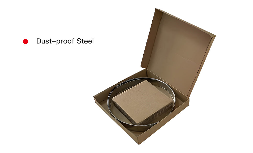 Wear gloves during installation. Place the steel belt neatly. Hold the edges of the steel belt with both thumbs and slowly push it forward while pressing it down to ensure a tight fit with the rail. Repeat this motion several times to ensure complete alignment of the steel belt. Warning: Do not bend the steel belt.