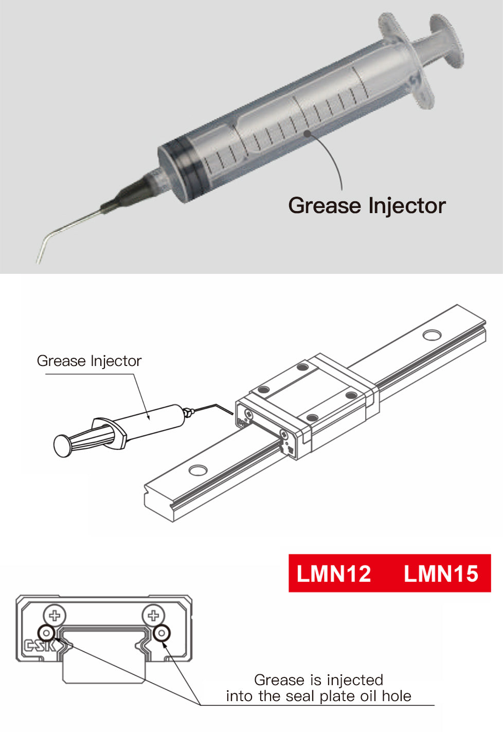CSK может предоставить специальный масляный инжектор, метод впрыска масла см. на правом рисунке. - Инжектор масла:
